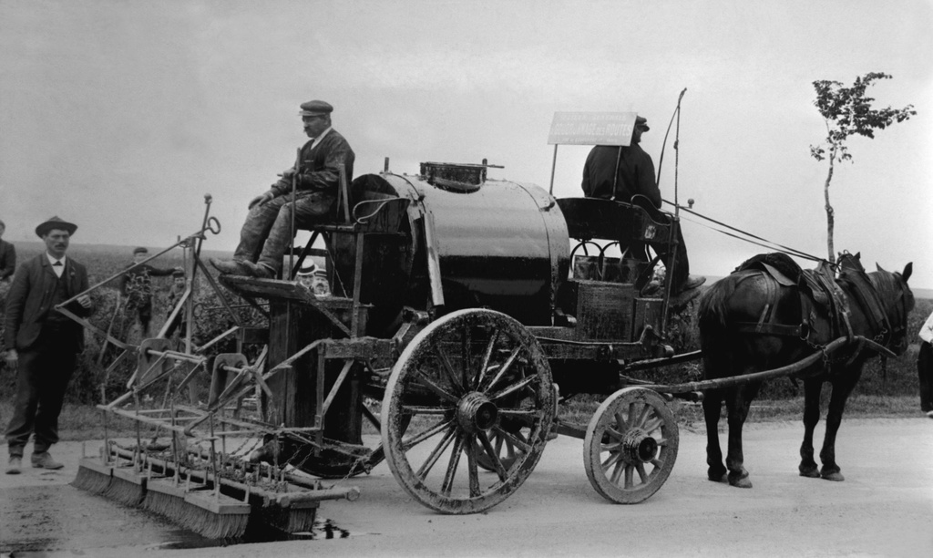 At the beginning of the 20th century, cars began to spread and could then drive at speeds over 60 km/h (40 mph) on a road network that mostly consisted of gravel or dirt roads. In urban areas, drivers and wanderers were experiencing breathing difficulties because of the huge amount of dust generated by car traffic. In addition, drivers’ vision was impaired and many accidents occurred due to unseen obstacles. Last but not least, houses neighbouring trafficked streets became covered in dust and their indoor air quality was heavily degraded. Thus, dust emissions from pavements became one of the most pressing public health topics of the day.